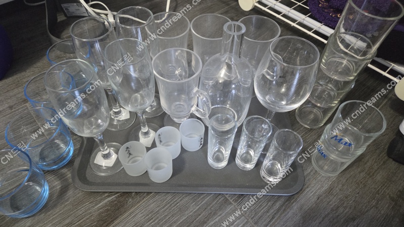 각종 잔들 일괄(물컵, 와인잔, 샴페인잔, 샷글라스 등)