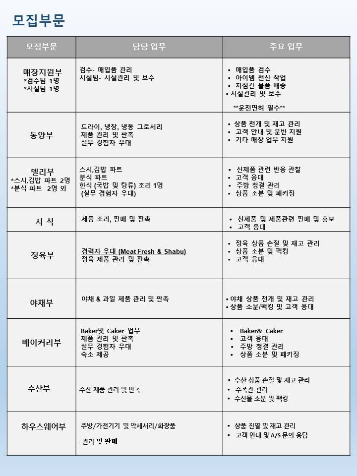 H-MART EDMONTON 1호점에서 함께 일할 직원을 모집합니다.