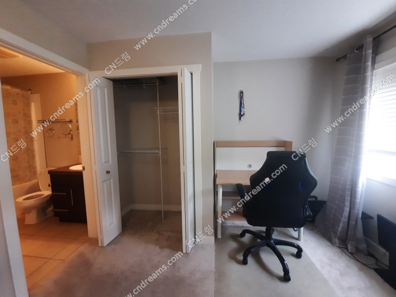 방 : 마스터 룸 방1개, 개인화장실(full bath)/책상/의자/침대/옷장/옷걸이등 제공