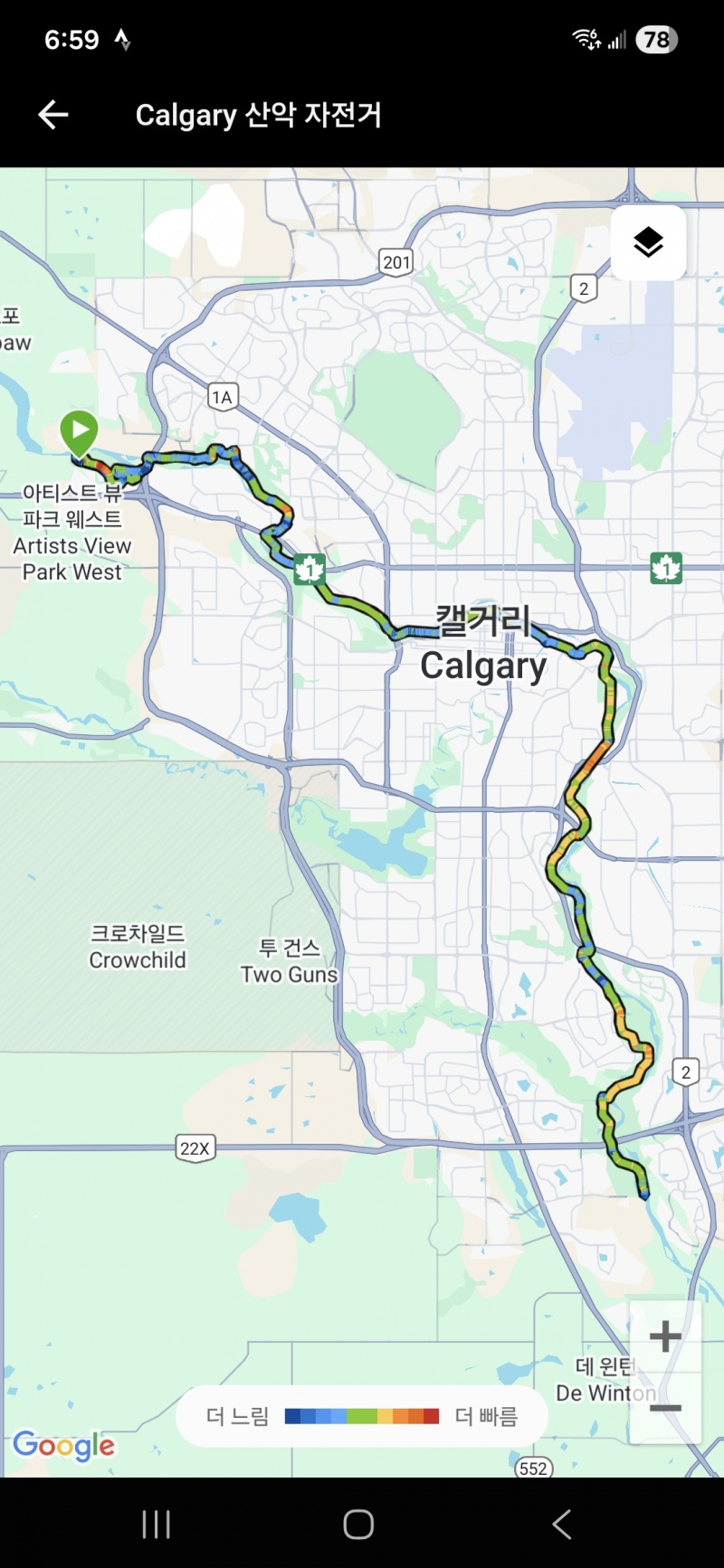 캘거리에서 로드 자전거타기(왕복 100k)