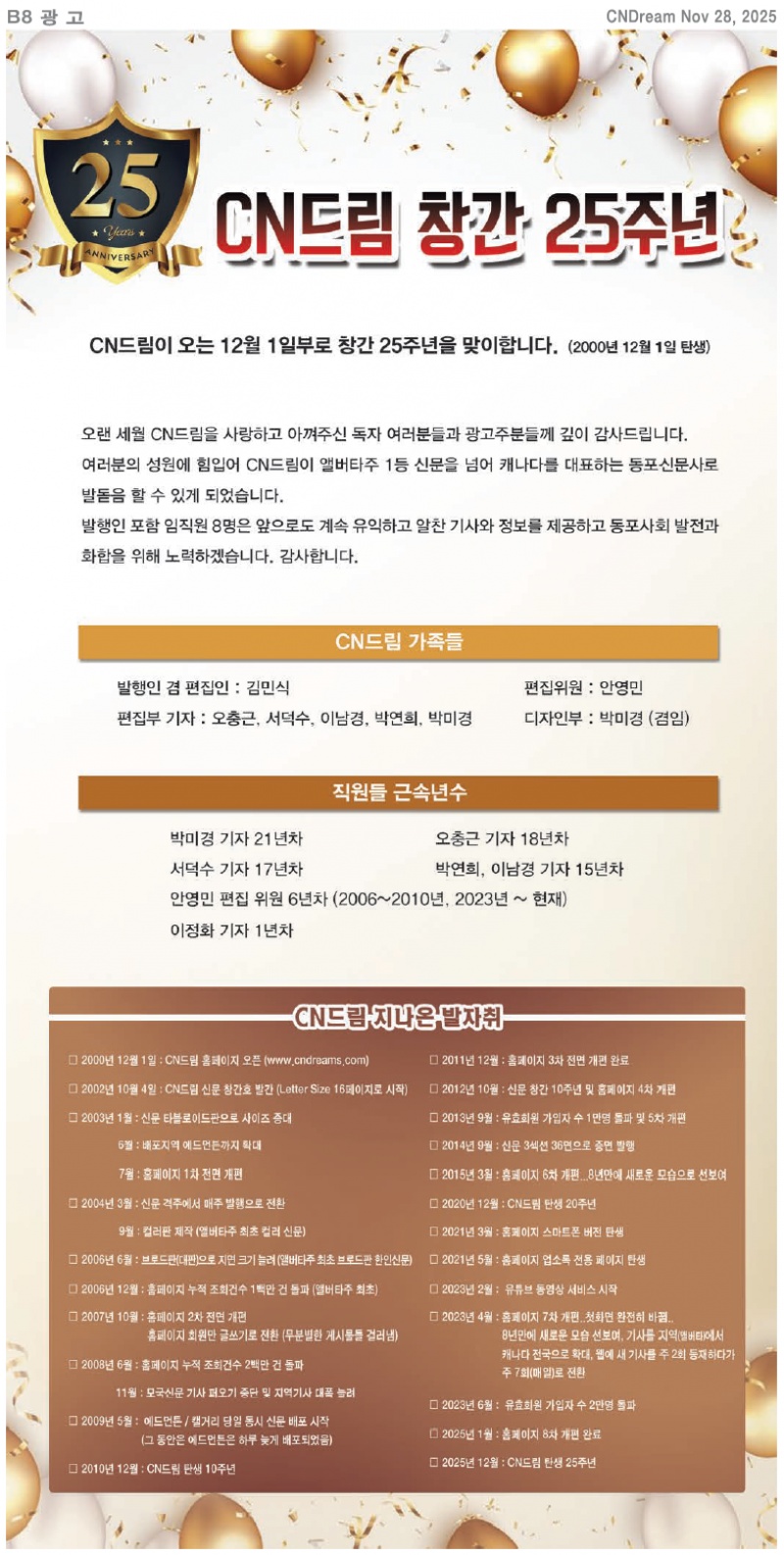 CN드림이 창간 25주년을 맞이했어요. 모든 분들께 감사드려요