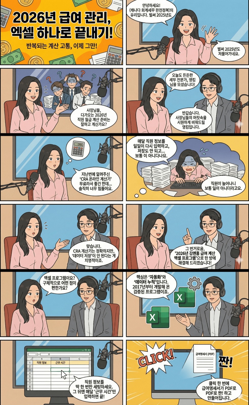 (유튜브 동영상 안내) 2026년 캐나다 급여공제액 계산을 위한 엑셀프로그램 안내