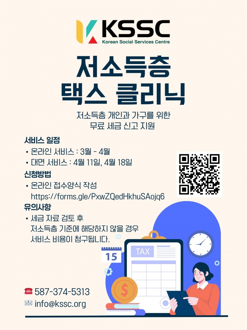 [KSSC] 저소득층 무료 택스 클리닉 안내