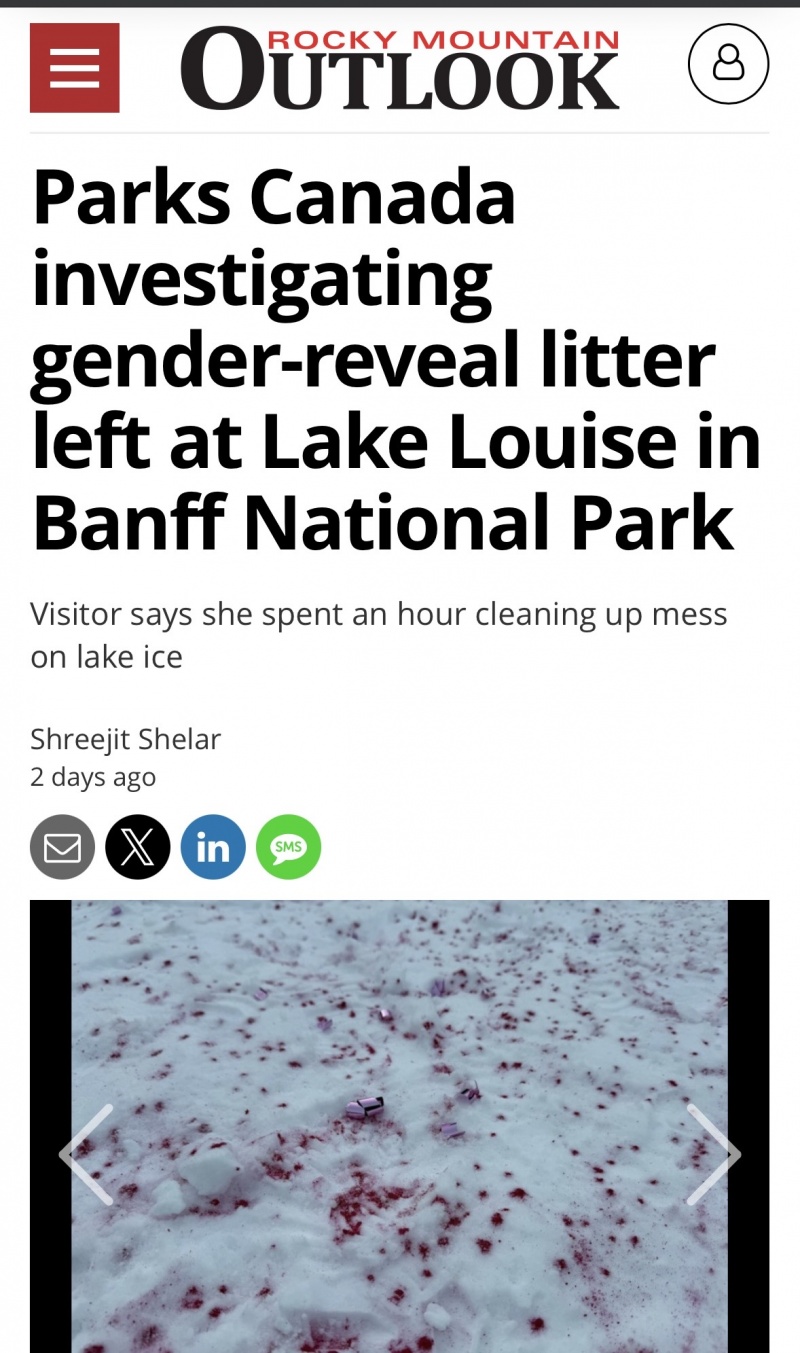 https://www.rmoutlook.com/lake-louise/parks-canada-investigating-gender-reveal-litter-left-at-lake-louise-in-banff-national-park-11858691