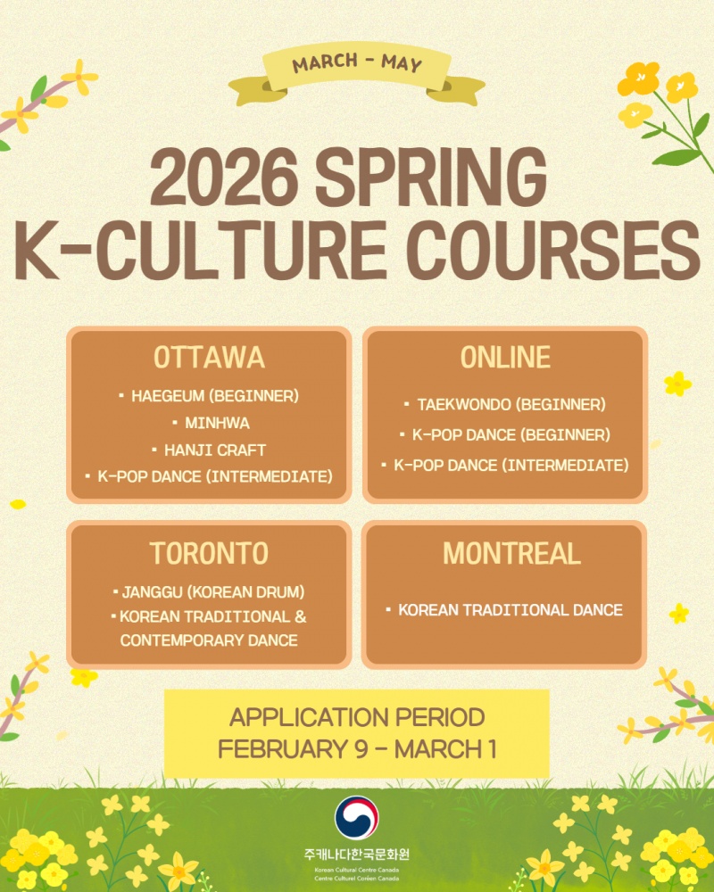 주캐나다문화원 주관) 2026년 봄학기 문화강좌 안내