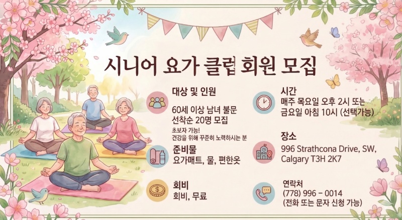 시니어를 위한 무료 요가 교실 안내