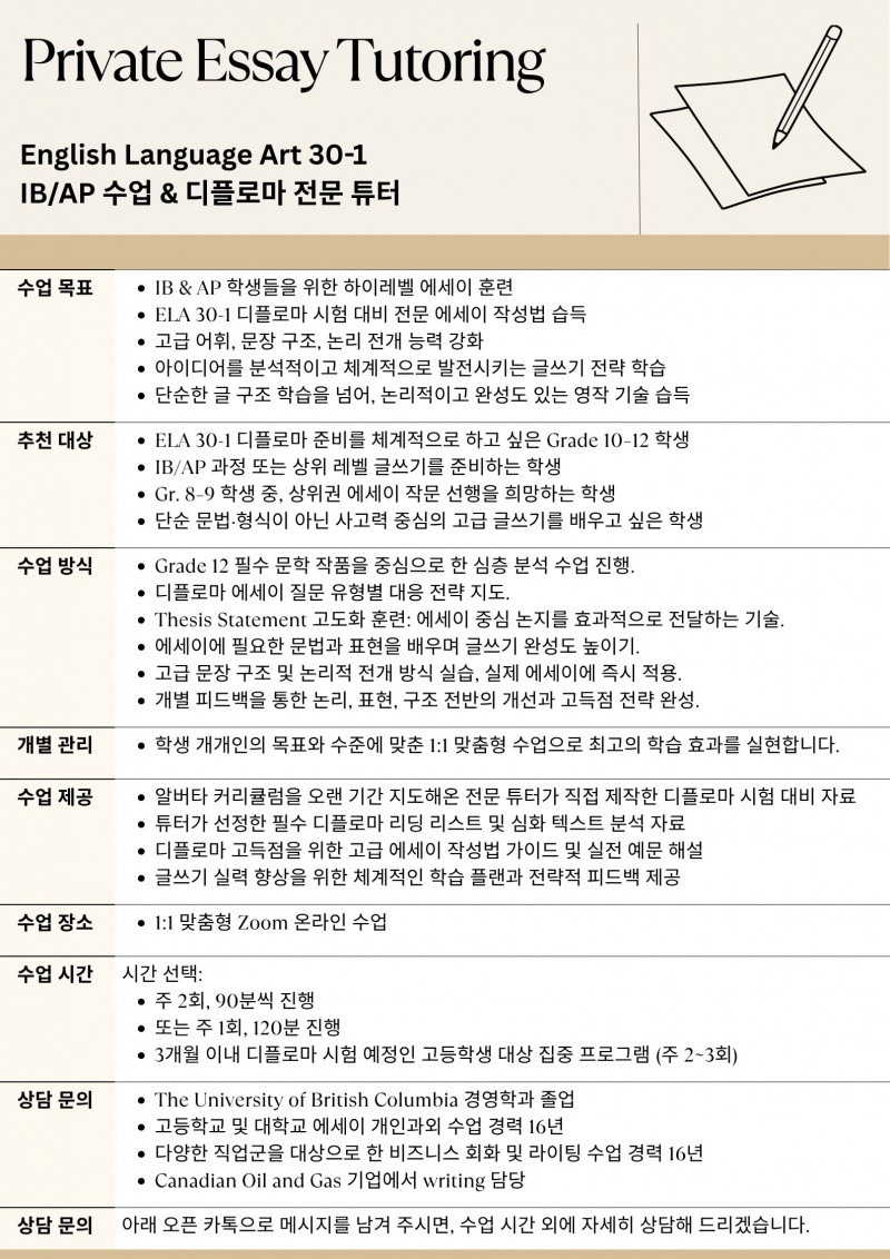 [구직] ✏️⭐[영어 과외/튜터] ENGLISH - 하이스쿨 디플로마 에세이/영작 지도️ - IB/AP⭐⭐⭐✏️