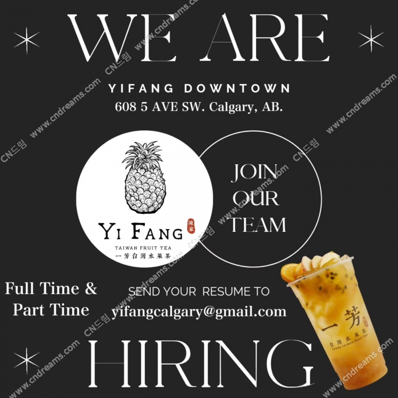 YiFang Taiwan Fruit Tea, located in downtown, is looking for Bubble Tea Staff (Full-time/Part-time).