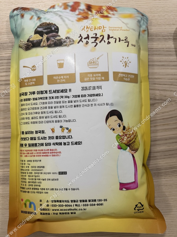 생태맘 청국장가루 1 kg (2026년 7월 8일까지)