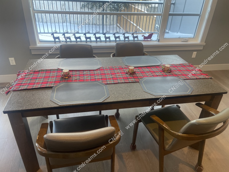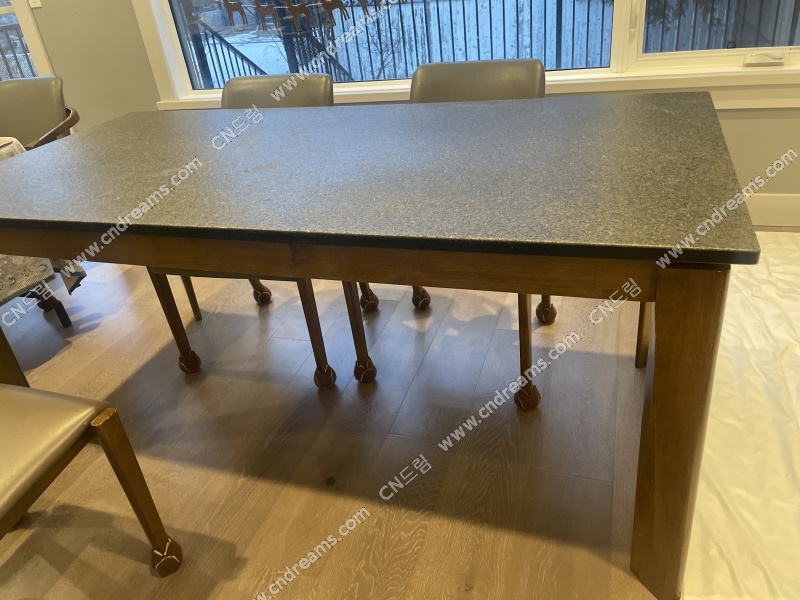 스크래치 걱정 없는 화강암 식탁입니다.약간의 생활 사용감은 있으나, 균열이나 큰 손상은 없어요. 아주 튼튼하고 무게감이 있습니다.