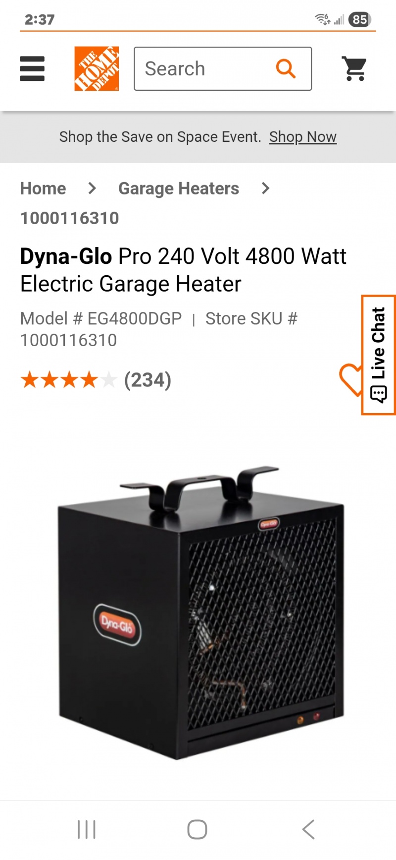 - Garage Heater(Dyna Glo pro 240v 4800w)