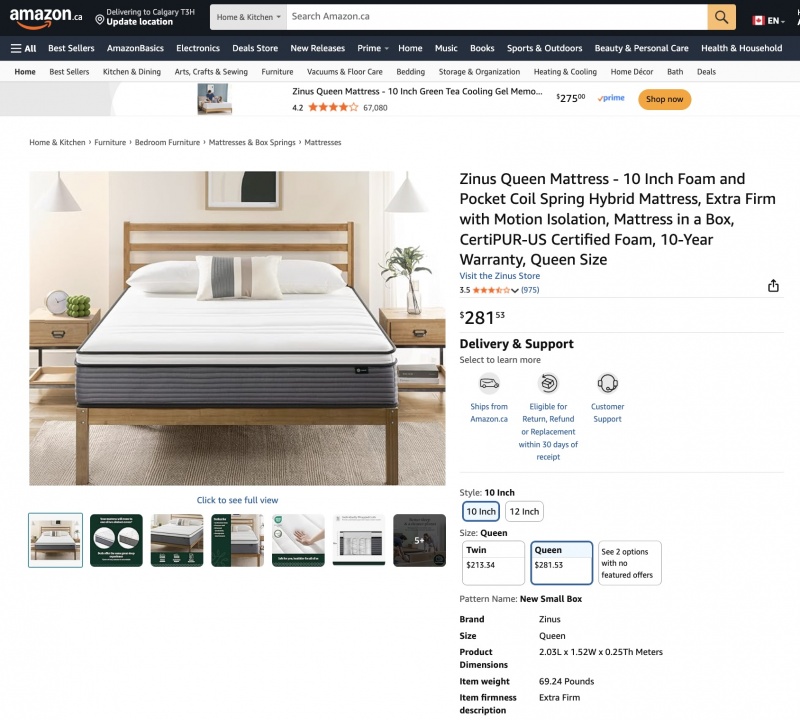 지누스 Queen 매트리스 – 6개월 사용 / 상태 최상 ($20)