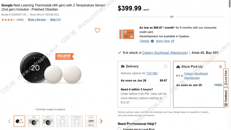 Google Nest Learning Thermostat (4th gen) with 2 Temperature Sensor (2nd gen) Included - Polished Obsidian