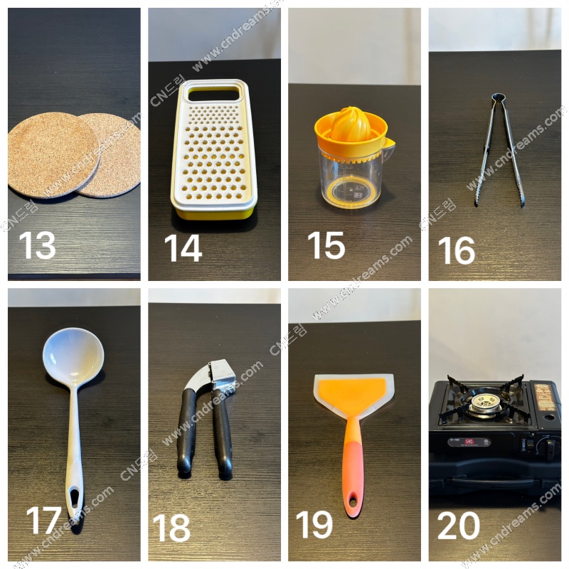 - 티팔냄비 : 한손 냄비, 지름 20.5cm, 5달러 (한손 냄비, 지름 17cm도 있음, 3달러)
