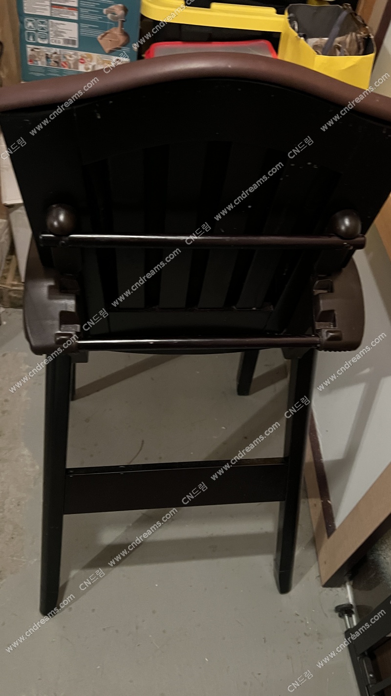 나무 하이체어입니다. 다른 의자들이랑 어울려서 이질감없이 잘 썼어요. 십불에 팔께요.
