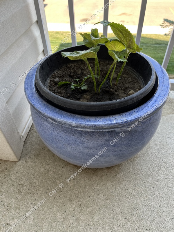 3 블루 + 플라스틱 화분 15불