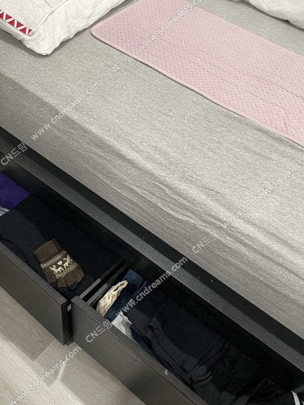 프레임도 있고, 밑에는 서랍도 두개 있어서 옷이나 용품 보관하는데 크게 도움됩니다.