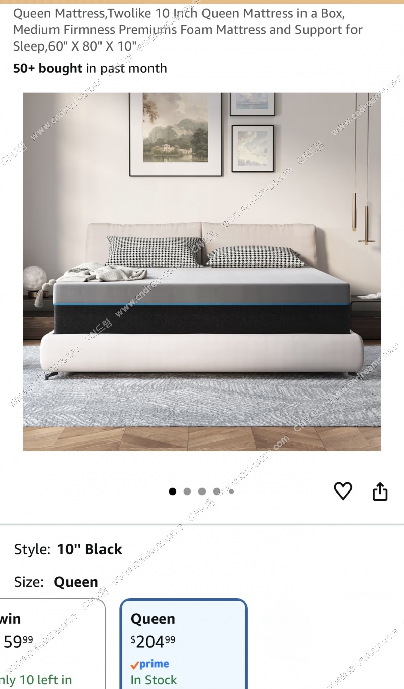 퀸사이즈 10인치 폼 매트리스 $80에 판매합니다.