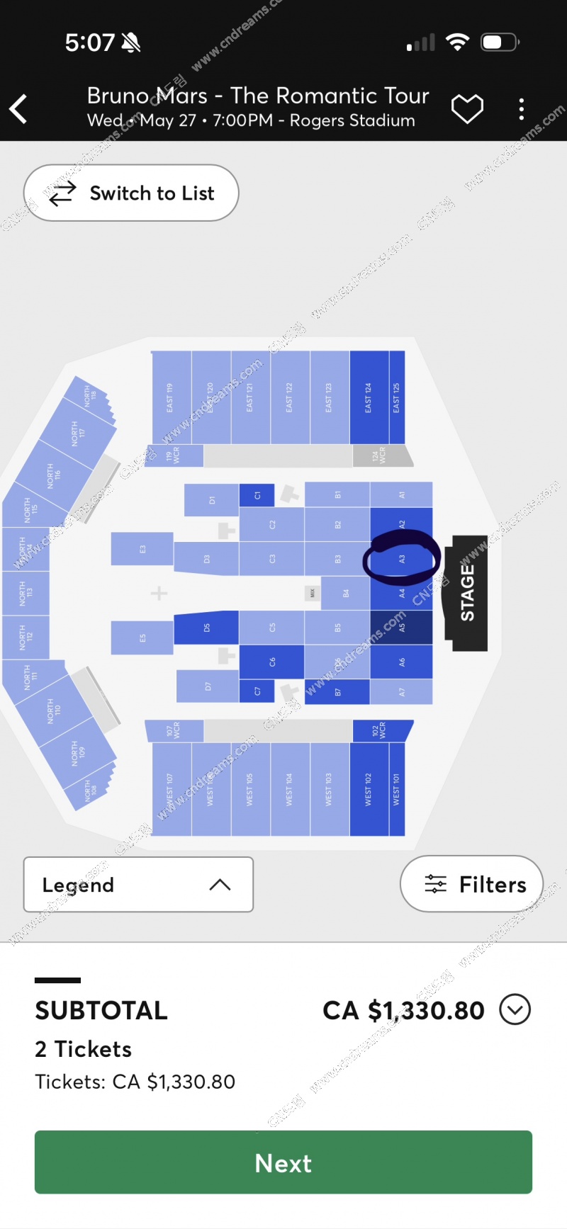 토론토 브루노 마스 콘서트 may 27 티켓 2장 팝니다. 좌석 좋아요 (앞 쪽 자리)