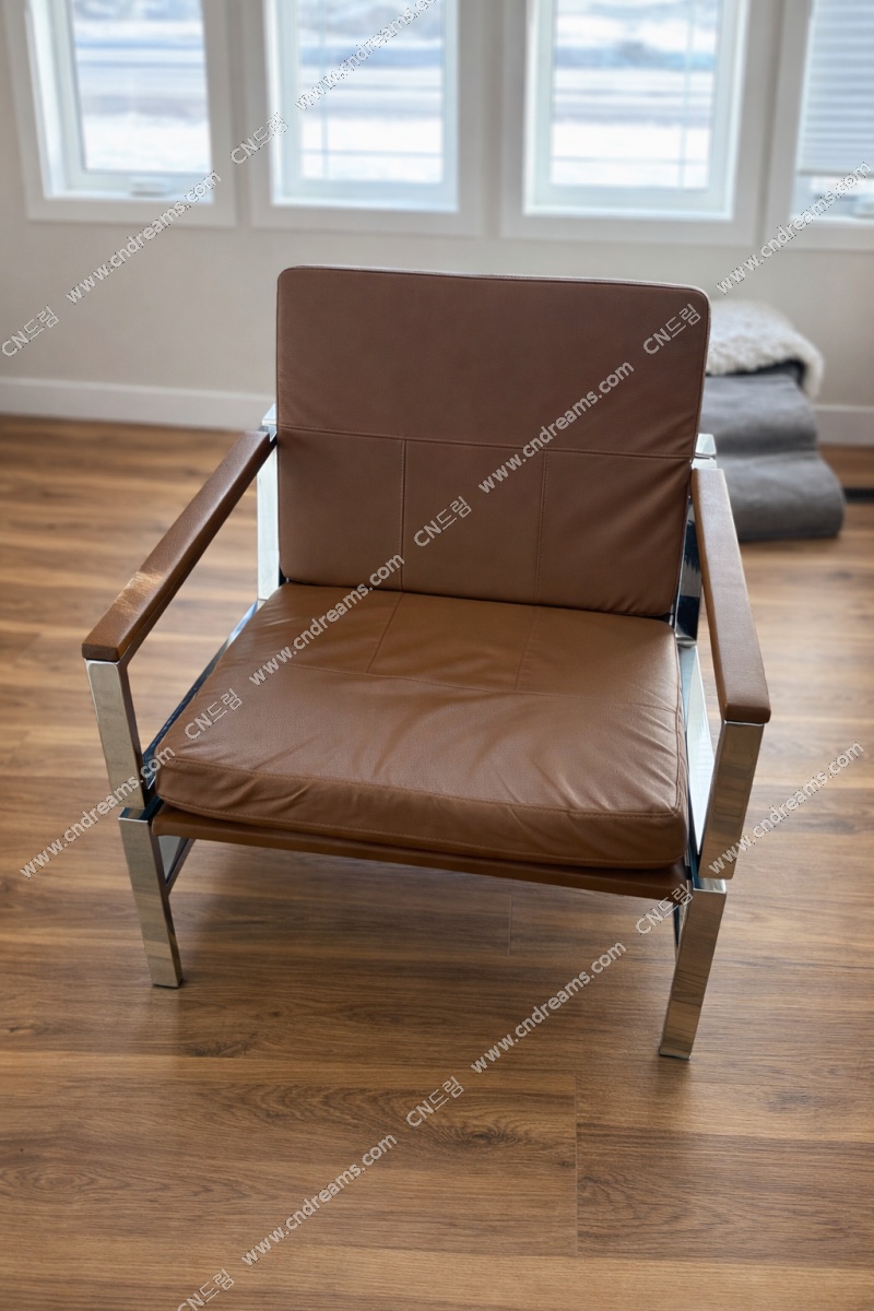 Modern Brown Leather Accent Chair with Chrome Frame