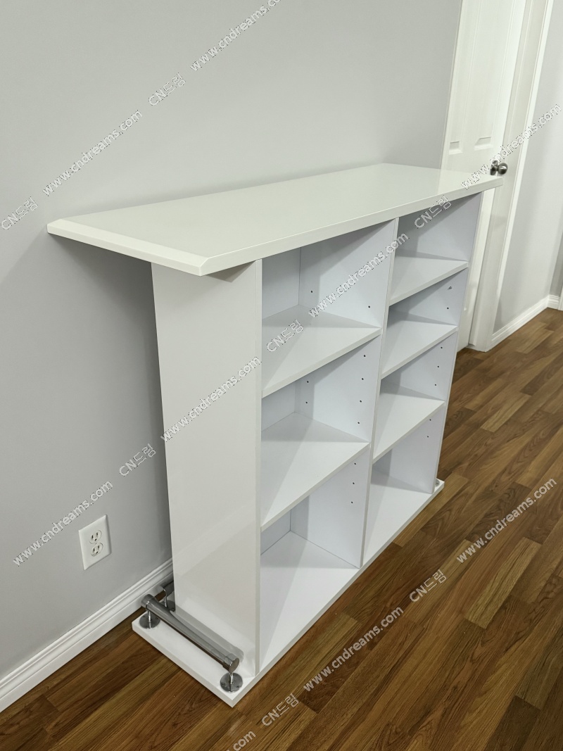 수납공간: 총 6칸의 오픈형 칸막이 (높이 조절 가능) – 와인병, 잔, 바 액세서리 수납에 최적화