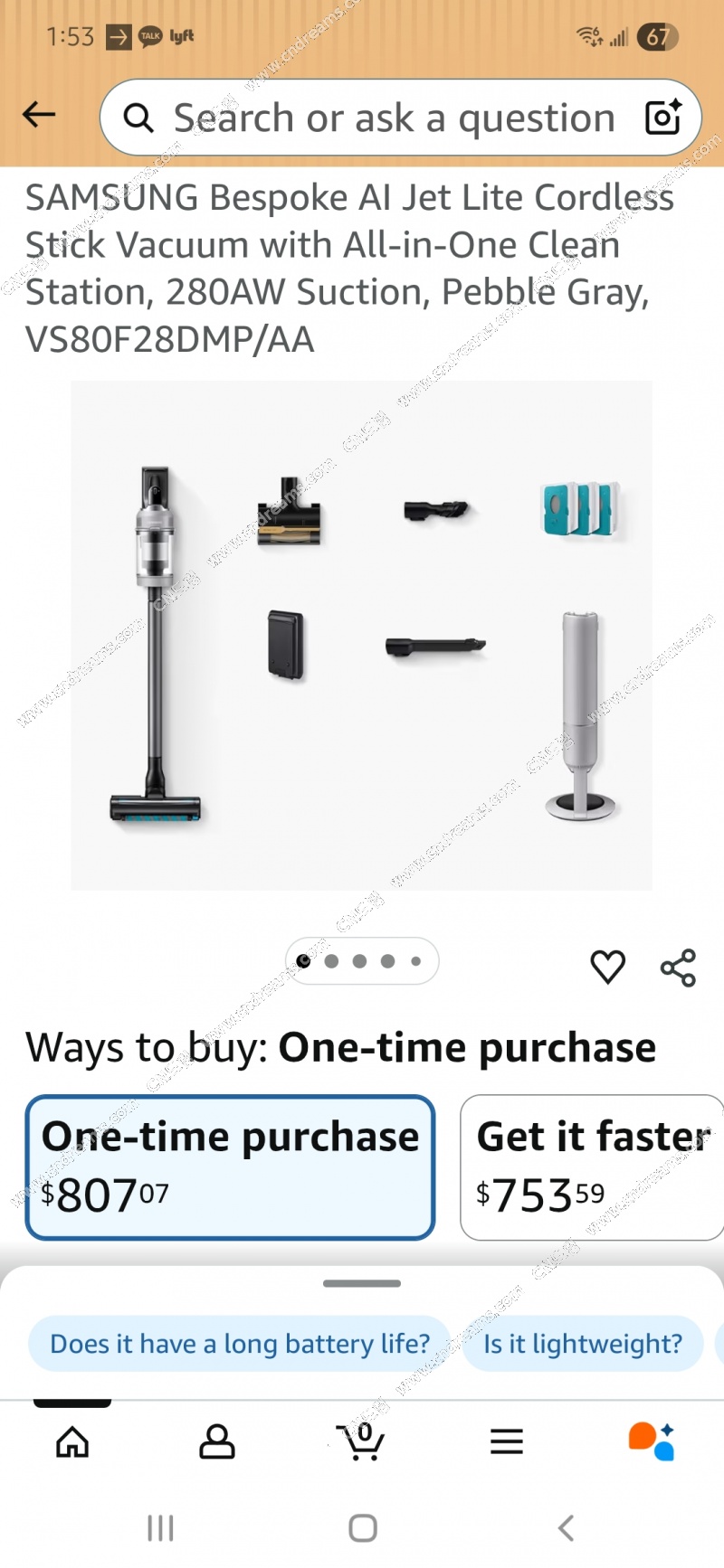 삼성 비스포크 AI Jet lite 무선청소기 박스 미개봉한 새 제품 판매합니다. 450불입니다