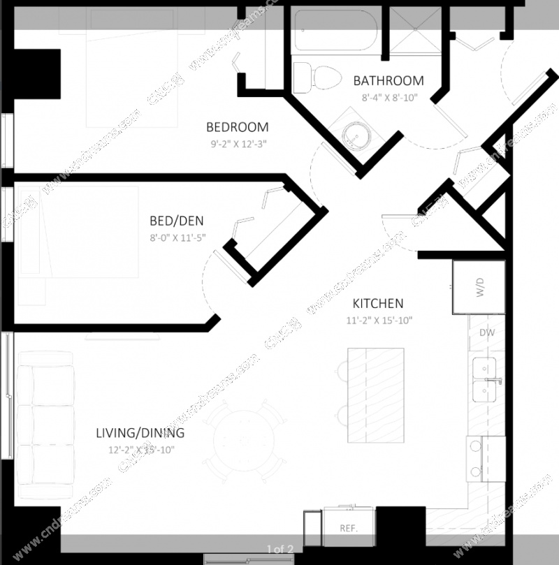 넓은 2 Bed 1 Bath 구조의 모던한 아파트