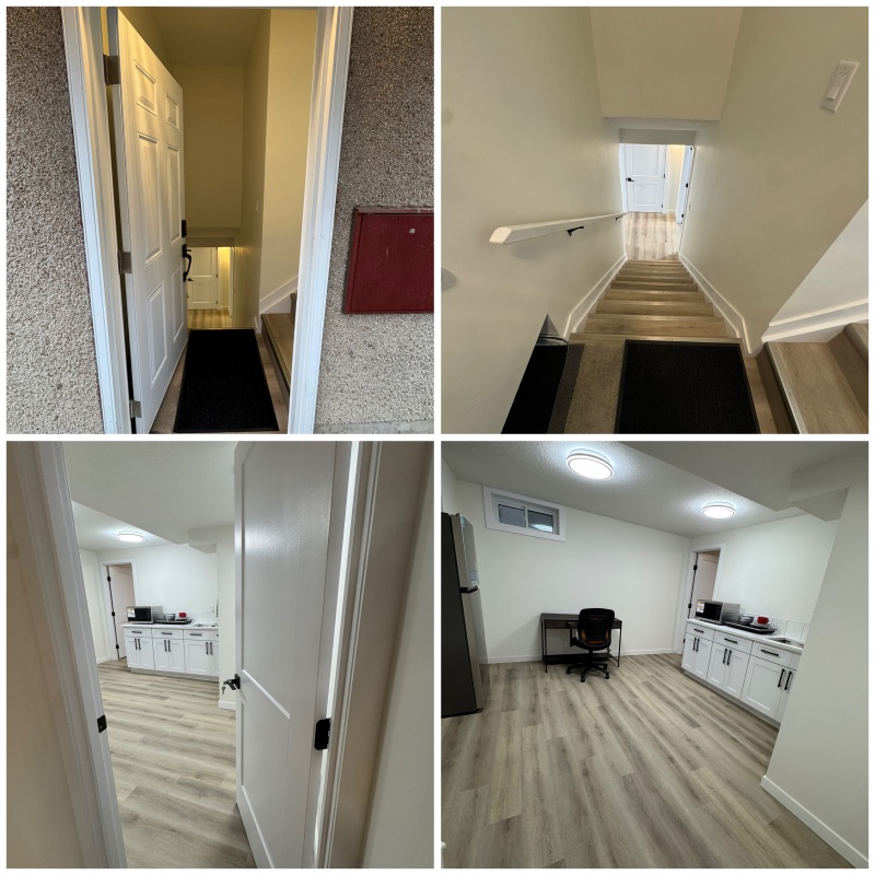 2. 사진에서 보시것과 같이 1 베드룸 + 1 거실겸주방 + 1 베스룸 이렇게 구성된 하프 베이스먼트 원베드룸 스윗입니다. 룸메이트나 룸렌트 아닙니다 개별로된 공간입니다. 혼자 원배드룸 스윗 다 쓰시기 때문에 프라이버시 보장되는 공간입니다. 창이 크게 나있어서 지하같이 느껴지진 않습니다. 집으로 들어가는 입구가 사이드쪽으로 따로나있어서 집주인과 마주치실일 없습니다. 사진에서 보시는데로 새로 레노베이션해서 깨끗 합니다. 거의 새집이라고 보시면 됩니다.