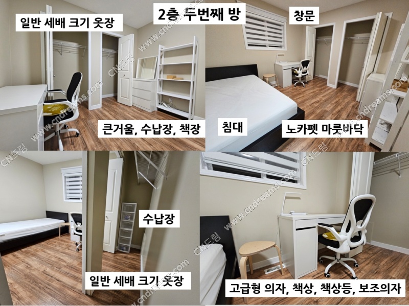 - 침대, 침구류, 책상, 책상등, 의자, 서랍장, 빌트인 옷장