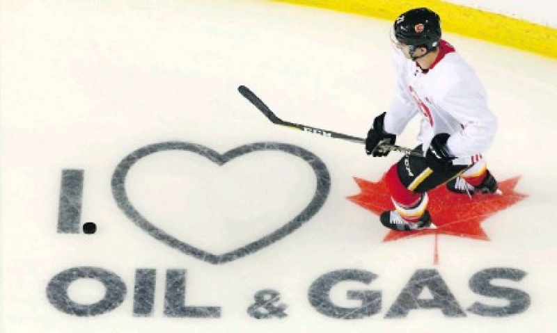 지난 주 수요일 캘거리 플레임즈가 원정 경기를 펼치는 동안 스코샤뱅크 새들돔 아이스 링크에는 새로운 사인 표시가 등장해 관심을 끌었다. 아이스 링크 양쪽 끝 부분에“I (heart) Oil & Gas” 문구가 새겨져 최근 심각한 위기 상황을 겪고 있는 앨버..