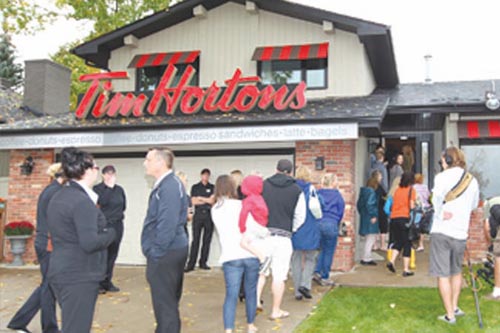지난 화요일 아침, 오크리지의 가정 집 한 채가 팀 홀튼 커피숍으로 변신했다. Timbit Stealth 프로젝트로, 팀 홀튼은 사우스웨스트 커뮤니티에 위치한 2층짜리 빈 집을 비밀리에 팀 홀튼 체인점으로 변신시키고, 양일 간 팀 홀튼이라는 빨간색 간판과 함..