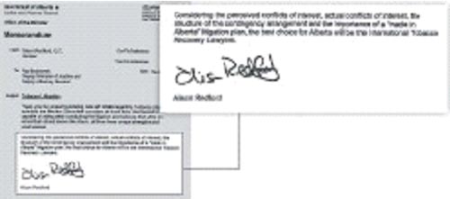 담배회사들을 상대로 한 100억 달러 소송과 관련해 변호인단 컨소시엄에 자신의 전 남편의 법률회사가 포함될 수 있도록 힘을 썼다는 의혹으로 인해 지난 1월 윤리위원회에 회부된 바 있는 레드포드 주수상이 당시 법무부 장관으로서의 정당한 직무행위로 판정..