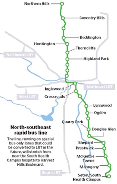 캘거리 시의회가 2015년부터 2024년까지의 세금 잉여금의 사용처로 결정한 버스 전용도로에 대한 관심이 높아지고 있다. 이 버스 전용도로는 캘거리 북쪽 하비스트 힐에서 에서 S.E의 South Health Hospital까지 총 길이 40Km에 이른다. 최종적으..