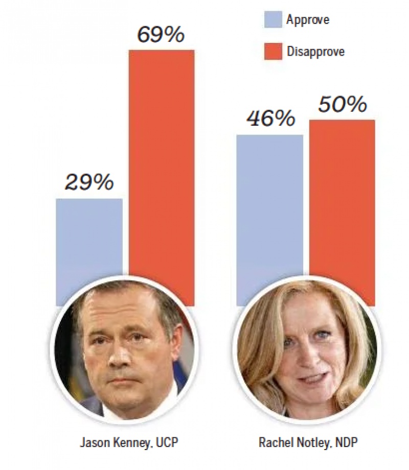 통합 보수당(UCP)은 앵거스 리드가 조사한 지지율에서 NDP에 3분기 연속 뒤지고 있지만, 두 정당은 현재 통계적으로 접전을 벌이고 있다.그러나 최근 자료는 제이슨 케니 주수상에게 부정적으로 작용하고 있다. 자신의 직무 수행에 대한 지지율이 30%..