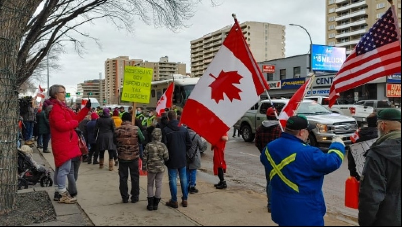 지난 2월 19일, 에드먼튼에서는 지난 3주간의 토요일 시위에 이어 연속 4주째 코로나 규제 반대 시위와 차량 행진이 진행됐다. 약 200명의 시민들은 캐나다 국기를 흔들며 앨버타 주의사당 북쪽의 바이올렛 킹 헨리 스퀘어에 집결했으며, 이곳에서는 코..