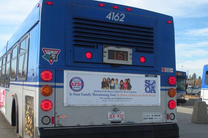 앨버타 대법원에서 곧 에드먼튼 트랜짓이 지난 2013년 반 무슬림 내용이라고 비난을 산 버스 광고를 중단한 것이 표현의 자유를 침해한 것인지에 대한 판결을 내리게 된다. 해당 광고에는 7명의 여성 사진과 함께 “무슬림 여성들은 가족에 의해 명예살인 ..
