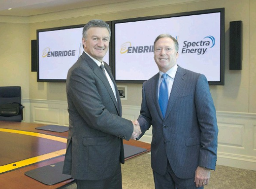 캘거리 기반의 엔브리지 사가 총 370억 달러를 투자해 미국 스펙트라 에너지 기업을 인수 합병해 초거대 파이프라인 기업의 출범을 알렸다. 이로 인해 엔브리지는 경쟁자인 킨더 모건을 제치고 파이프라인 기업으로는 전세계 최대규모의 파이프라인 기업으로 올..