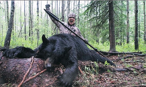 야만적인 흑곰 창 사냥 비디오로 떠들썩