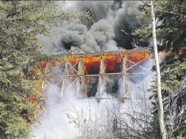 메이어쏘르프의 RCMP는 지난 화요일에 목조 다리를 삼키며 두터운 검은 연기에 휩싸이게 만든 의심스러운 화재를 조사하고 있다. 이 화재로 에드먼튼 서북쪽에 있는 학교와 트레일러 파크에 대피령이 떨어졌다.오후 1시 30분경 락 스테 앤 카운티(Lac S..