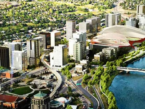 Calgary Municipal and Land Corp. 의 대표는 캘거리 플레임스가 제안한 메가 스포츠 컴플렉스를 웨스트 빌리지에 건축하는 커뮤니티 재활성화 계획이 캘거리 시에게 세금을 포함한 추가적인 수익을 최대 9억 불까지 올릴 수 있을 것이라고 내다보았다. 하..