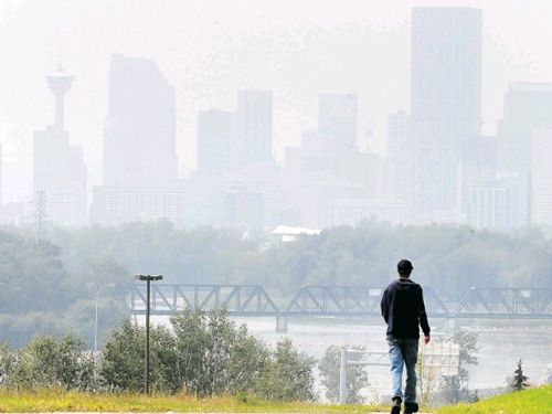 뿌연 하늘, 캘거리 대기 오염 주의보 발령