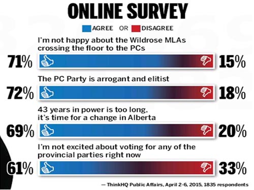 앨버타 총선 투표일인 5월 5일을 향해 각 정당이 대대적인 선거 유세활동을 벌이고 있는 가운데 각종 선거 여론조사 결과가 봇물 터지듯 나오고 있다. 그러나, 일부에서는 이들 선거 여론조사의 방법과 정확성, 신뢰성에 의문을 제기하고 나섰다. 지난 2012년 앨버타 총선의 경우 선거일 전..