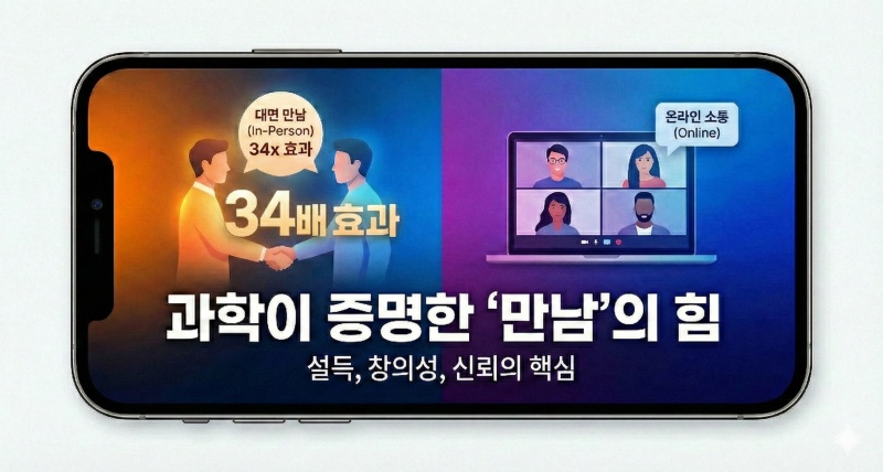 (이은정 객원기자) 줌(Zoom)과 이메일이 효율을 높인다고 믿지만, 과학적 데이터는 다른 이야기를 한다. 중요한 결정, 부탁, 새로운 아이디어가 필요할 때 '직접 만남'을 대체할 기술은 아직 없다. 디지털 시대에, 효율적인 소통을 위해 ‘여전히 만..