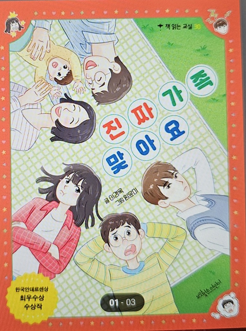 _글 동화작가 이정순 , (사)한국문인협회 알버타지부 동화작가이정순제목: 《진짜 가족 맞아요》지은이: 이경옥그린이: 임윤미출판사: 보랏빛소목차뒤죽박죽 하루반절만 가족이라고?내 마음도 같아최강나라변신성을 바꾸자고?냄새자전거체육 대회 연습토마토 스게..