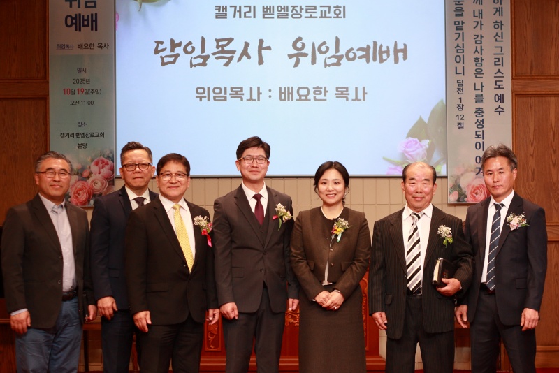 (이정화 기자) 캘거리 벨엘장로교회가 지난 19일(주일) 배요한 목사 위임감사예배를 열었다. 교계 관계자와 성도들이 함께 새 담임목사의 부임을 축복하며 교회의 새 출발을 알렸다. 이날 예배에는 벧엘 장로교회 교인과 외부 교단 및 노회 인사 4명 등 ..