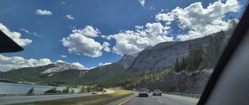로키산맥을 가로지르며 밴프 방향으로 달리는 차량들 (사진 : 이정화 기자)