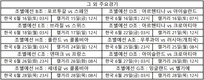 2018년 월드컵 일정 캘거리 시간으로 정리한 것 공유합니다.