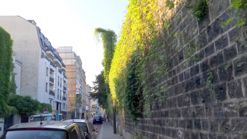 하여튼 전철을 타고 강베타 역에서 내렸다. 파리 전철은 서울 전철하고 시스템이 비슷해 서울에서 단련된 사람들은 한번만 타보면 금방 익숙해진다. 이정표를 따라가니 세월의 흔적이 겹겹이 쌓인 먼지와 매연, 이끼에 찌든 묘지 담벼락이 나온다. 담벼락을 따라 걷다 보니 꽃집과 철문이 보인다. 담벼락을 뒤덮은 담쟁이는 죽은 자들의 손길일까? 강베타 역에서 내리면 묘지 후문으로 들어간다. 정문은 페르 라세 역에서 내리면 된다.