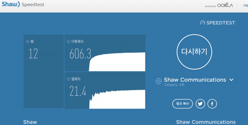 Speedtest기준으로 320Mbps 정도 나옵니다.