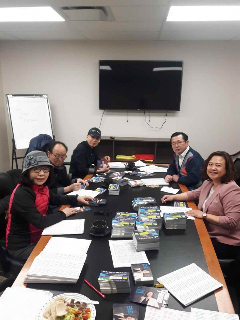 에드몬톤 한인들은 당이 다르고 성향이 달라도 쥬디 김의 선거운동을 돕고 있다.